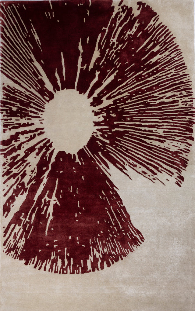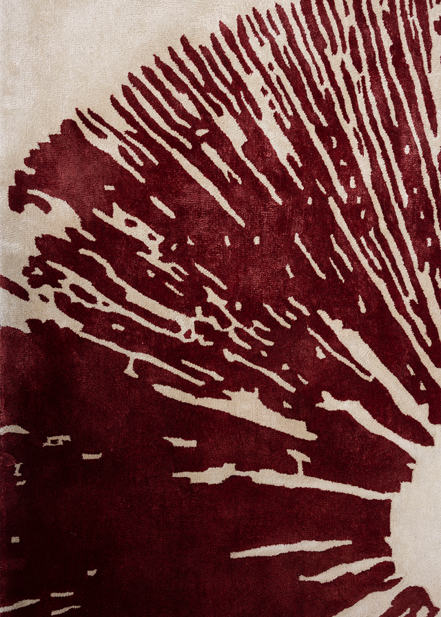Stamped is a handcrafted, hand-tufted viscose rug that celebrates bold artistic expression. Featuring a striking abstract motif in deep burgundy set against a soft neutral base, the design feels deliberately imprinted—true to its name. Each rug is meticulously handmade by skilled artisans, with the viscose pile hand-tufted to create a smooth, luminous surface that reflects light beautifully.