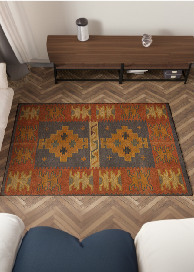 Regular maintenance of the rug can be ensured with a strong broom or vacuum that pulls away all the trapped dirt once a week. Initially, you will observe negligible wool shedding. Such shedding is normal and is no cause for concern. Always avoid steaming or dry cleaning the rugs. Rotate the carpet every few months to protect it from sun fading.